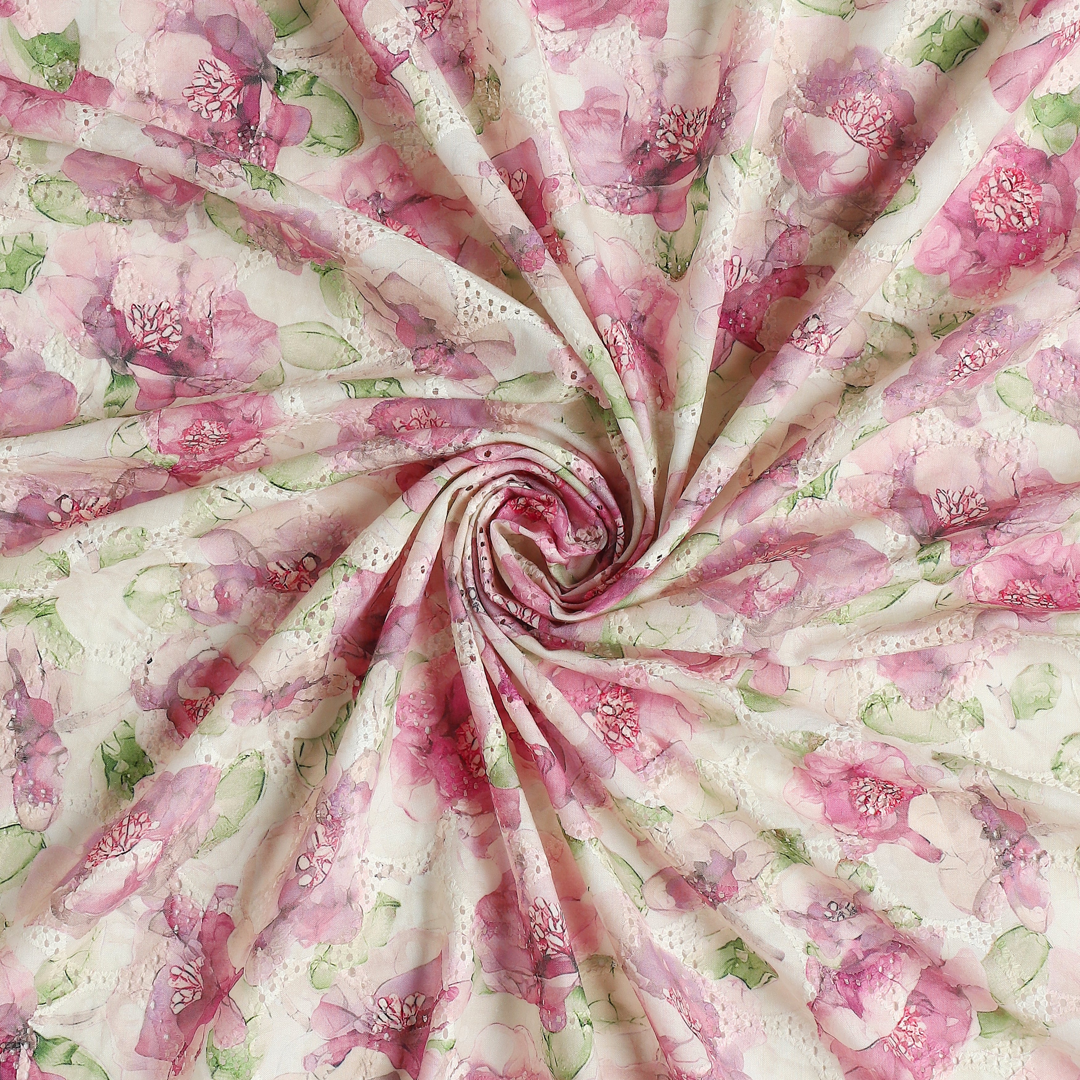 Afreen Embroidered Pink Cotton Fabric with Cutwork